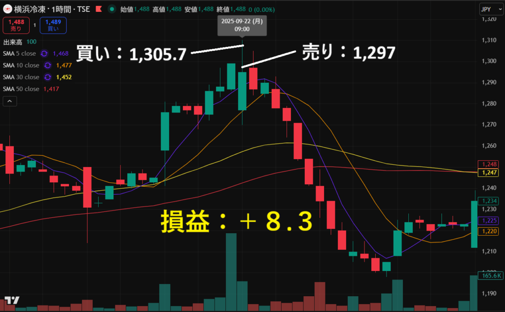 横浜冷凍については、逆指値による損切りが結果的に正解でした。