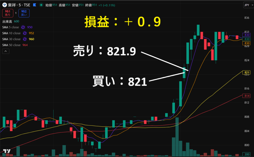 売り:821.9(逆指値)※設定は823。軽いスリッページあり。
